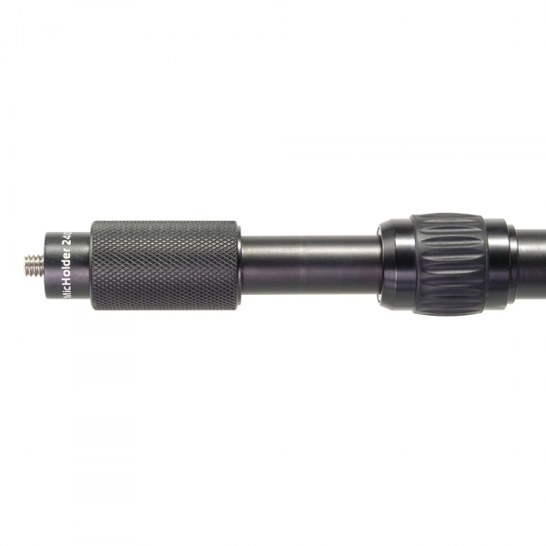 Алюминиевая телескопическая микрофонная удочка (бум) GreenBean MicHolder 240 выдвигается на длину 2,4 м из сложенного состояния длиной 64,5 см, вес 0,61 кг. На конце удочки находится винт с резьбой 1/4" (в комплекте переходник 3/8").